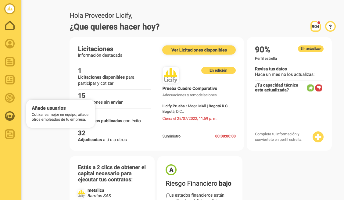 En Licify, es posible la creación de diferentes usuarios, esto con el fin de permitirle a cada miembro de tu equipo pueda presentar las propuestas comerciales para las licitaciones de las constructoras que están bajo su responsabilidad.