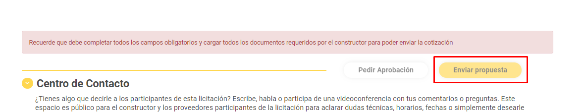 Requiere cambio: El comprador ha solicitado un cambio en tu propuesta. Puedes realizar la modificación correspondiente y proceder nuevamente con el envío al comprador.