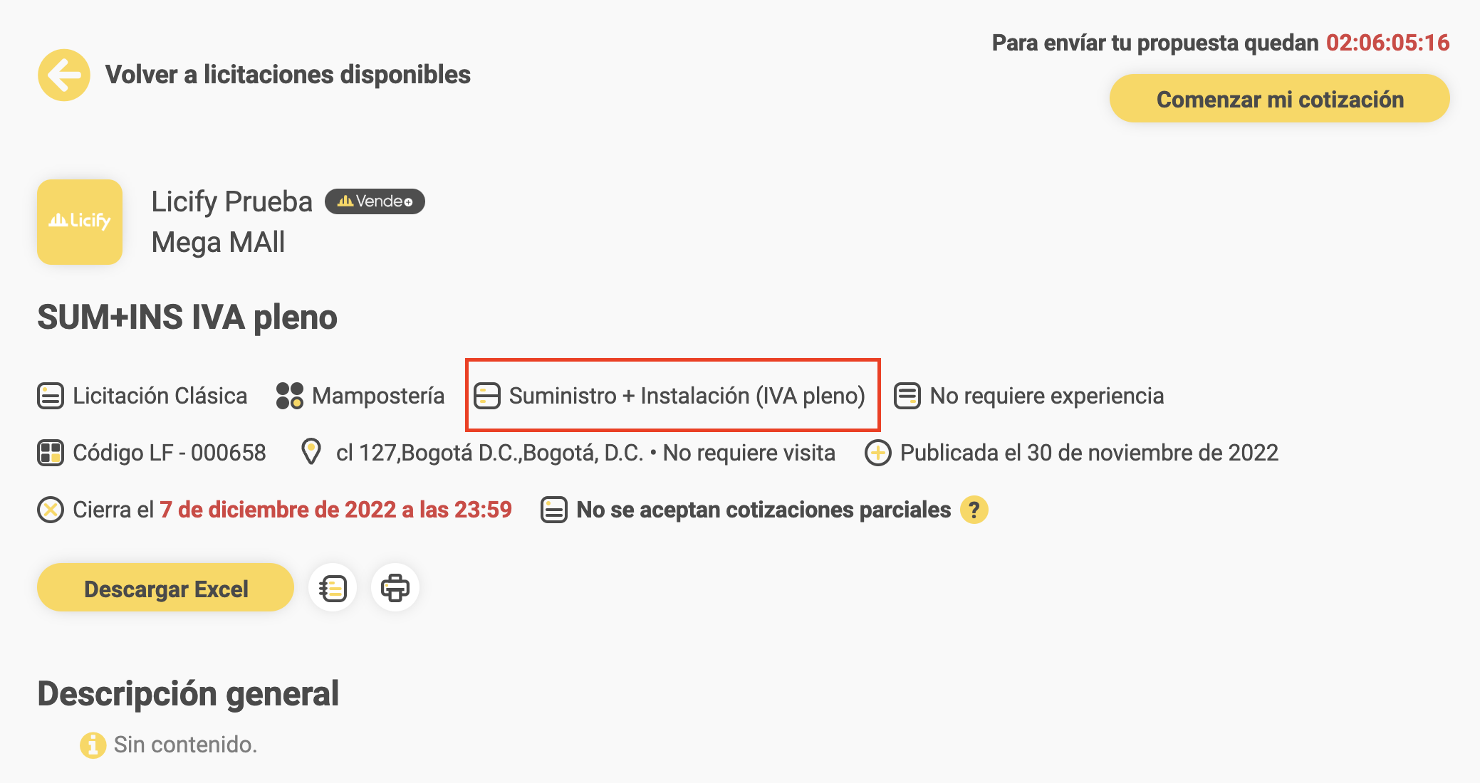 En este apartado te explicaremos como puedes enviar tu cotización a la licitación de tu interés. Para esto vamos a partir de la base que ya encontrarte la licitación a la cual quieres participar. Si no es así, ojea este instructivo para encontrarla: https://licify.freshdesk.com/support/solutions/articles/44000384540-%C2%BFc%C3%B3mo-puedo-acceder-a-una-licitaci%C3%B3n-abierta-cerrada-